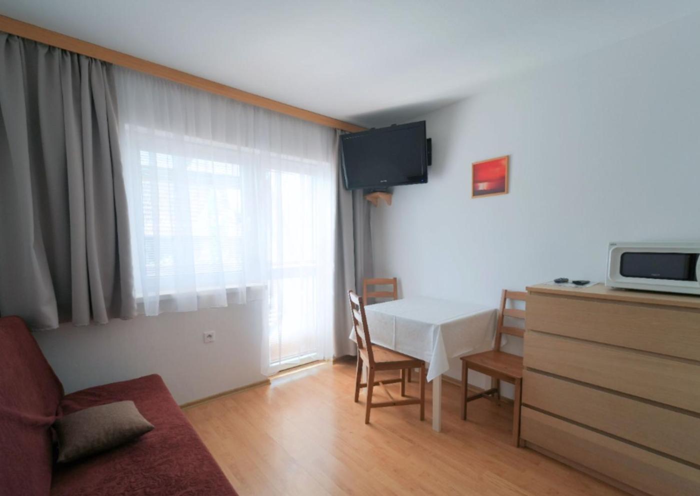 Apartament z balkonem. Boasting a private entrance, this apartment comes with 1 living room, 1 separate bedroom and 1 bathroom with a shower. Guests can make meals in the kitchenette that features a stovetop, a refrigerator, kitchenware and a microwave. Featuring a balcony with garden views, this apartment also features an electric kettle and a flat-screen TV with satellite channels. The unit has 2 beds. Apartament - 4 osobowy. Powierzchnia pokoju ok.: 32 mkw. ;