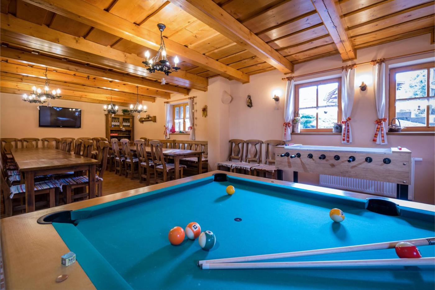 Domek. This spacious chalet is comprised of 1 living room, 6 separate bedrooms and 6 bathrooms with a bath. The unit offers 15 beds. Domek - 31 osobowy. Powierzchnia pokoju ok.: 126 mkw.